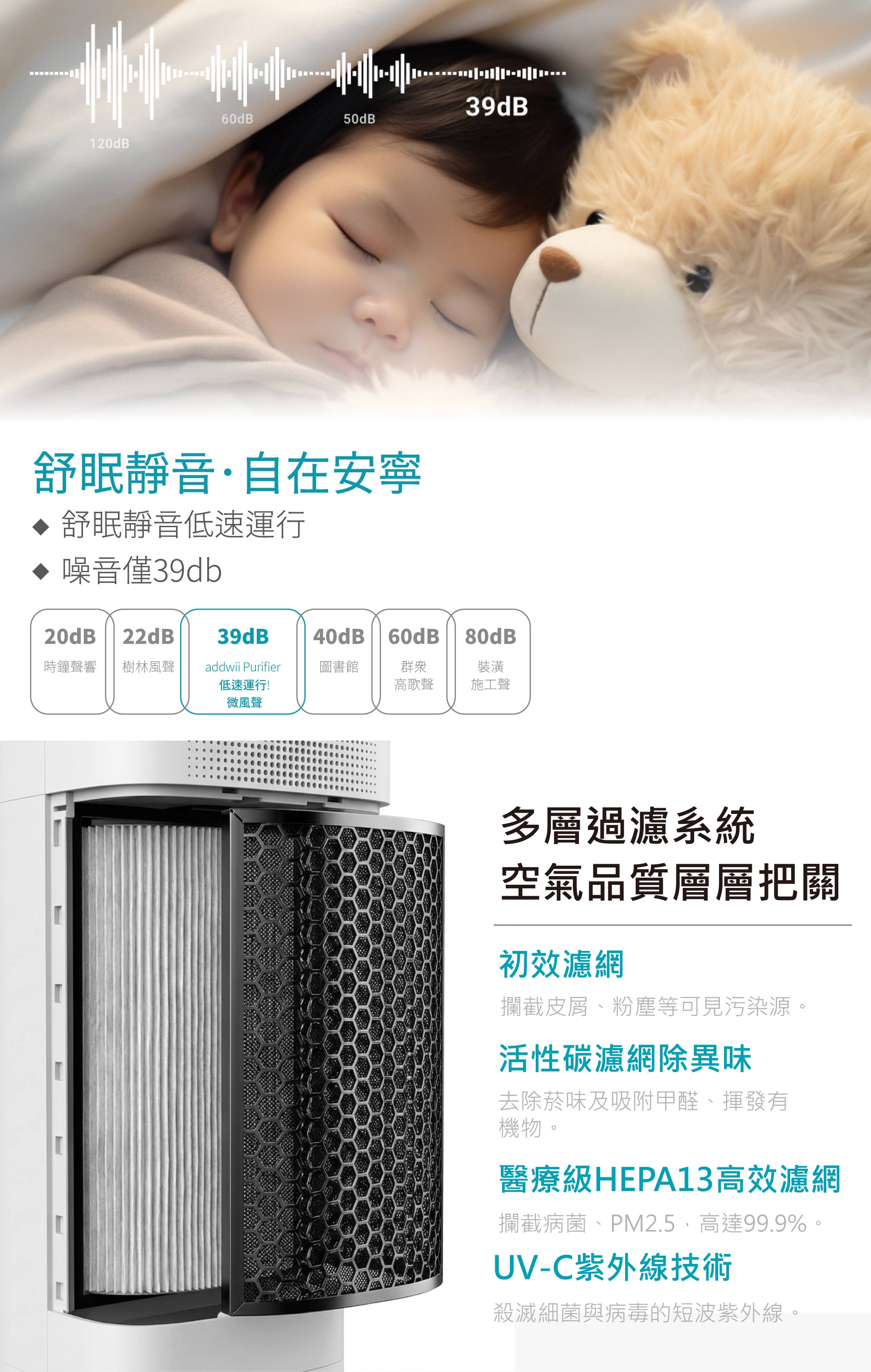 『addwii Clean Room 居家無塵室』擁有PM2.5微粒趨於0的系統,透過高效微粒過濾器,進行攔截病毒、細菌、PM2.5微粒、灰塵、花粉、寵物皮屑及黴菌孢子等污染源,其過濾效率可達99.97%,能讓寶寶所處空間環境就像住在嬰兒無塵室裡,備受呵護。