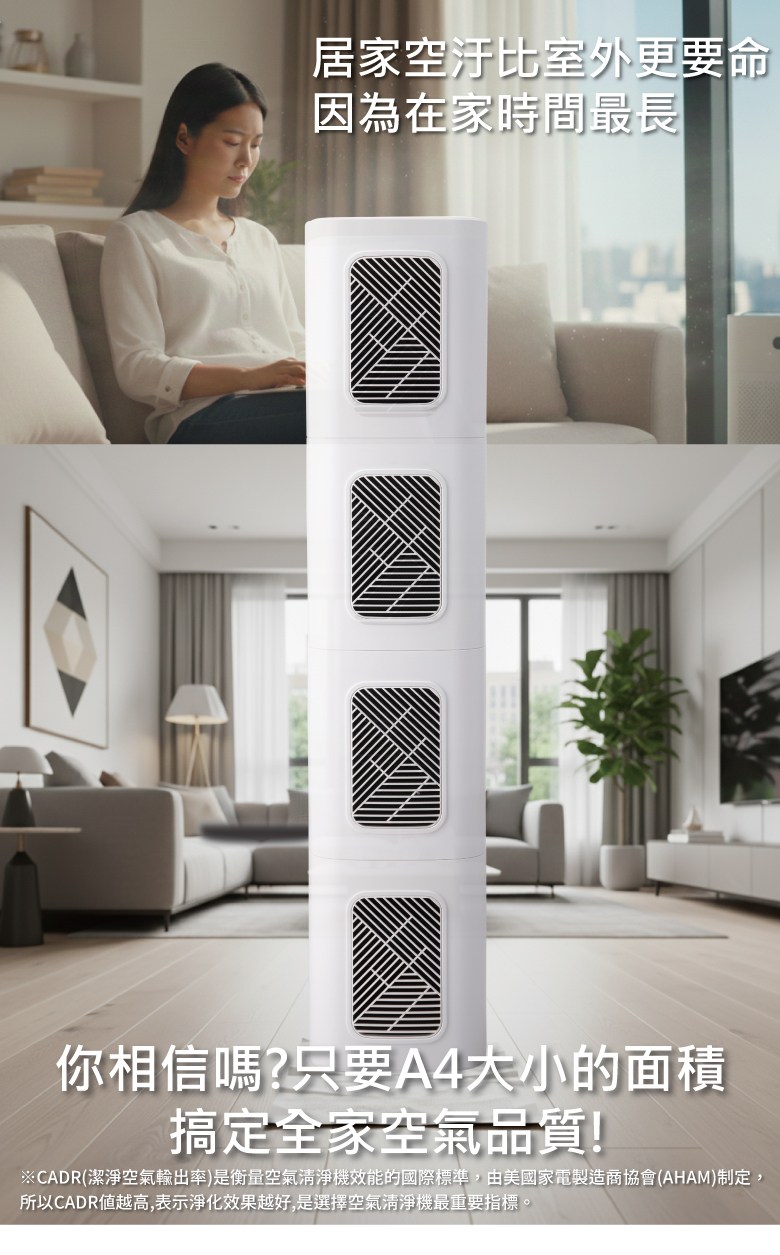 我們打造的產品是居家頂級的無塵室,透過全面偵測系統與 AI 智慧功能運用下,能快速有效地將 PM2.5 微粒含量降低趨近於0,並且對於 PM10微粒、細菌、真菌、TVOC 等空污物皆為可降低到無法偵測狀態的高標準等級。是一般市面上販售的空氣清淨機無法比擬的。