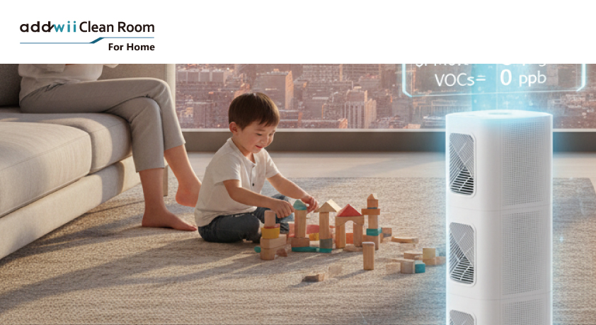面對臭氧前驅物(VOCs)與超細微粒(PM0.1),傳統的濾網式清淨機往往有其極限。addwii clean room for home 提供了更全面的解決方案: