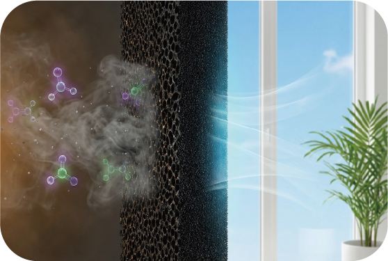 去除菸味及吸附有害氣體如甲醛、揮發性有機物(VOCs)。